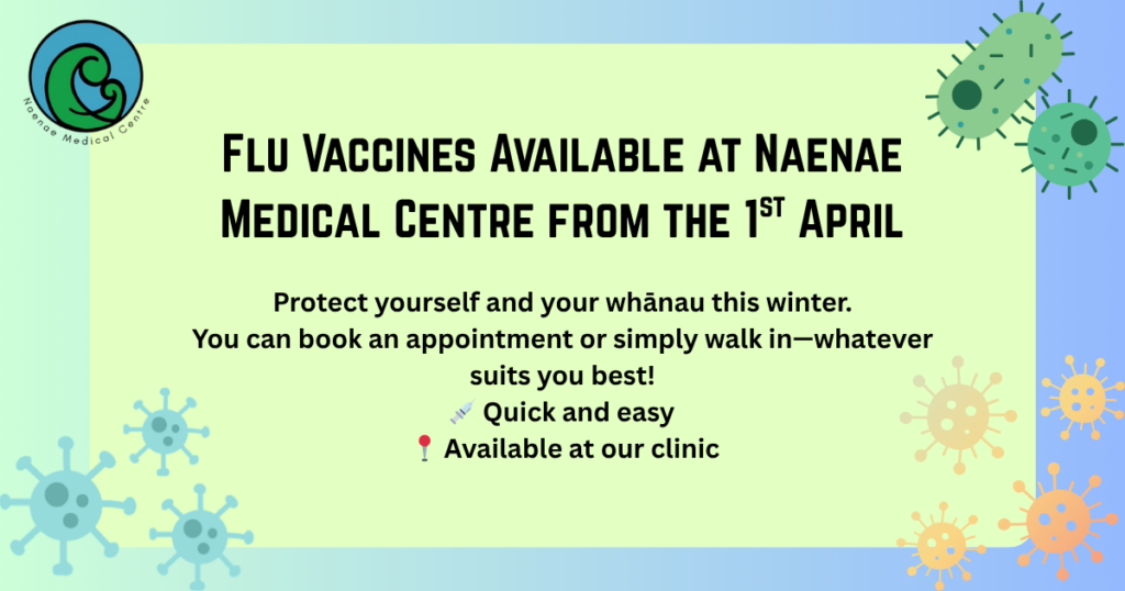 2026 Flu Vaccinations Posted on March 20, 2026 Ring Naenae Medical Centre on 04 5671066 to book an appointment, or just walk in